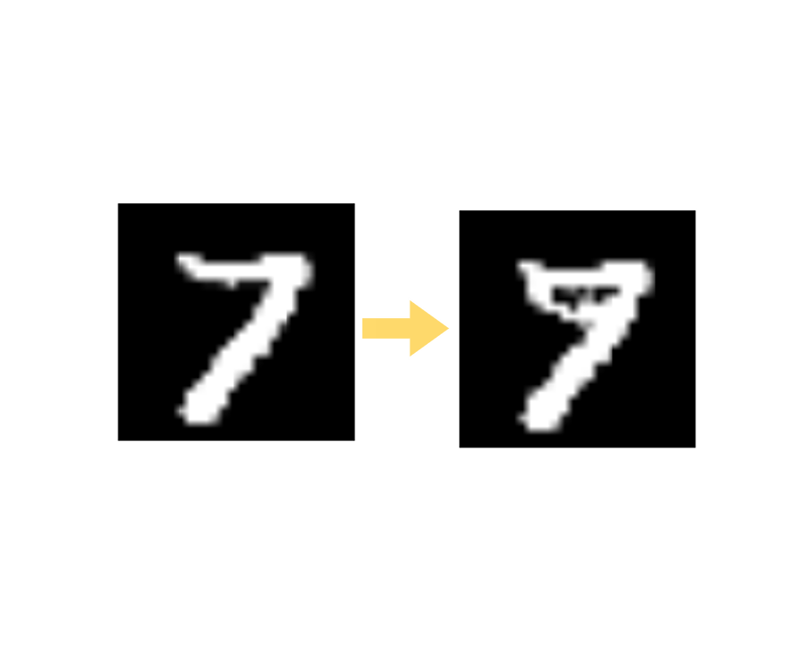 where \(K\) is the number of classes, \(f'_k\) represents a logit score for a class \(k\), \(X_{i, c_t }\) denotes \(i\)-th training data that is classified into a target classes \(c_t\). \(N\) denotes the number of randomly sampled training data. In addition, we add a regularizer \(\lambda\) to encourage the values of \(X'\) to close to the input data \(X\).