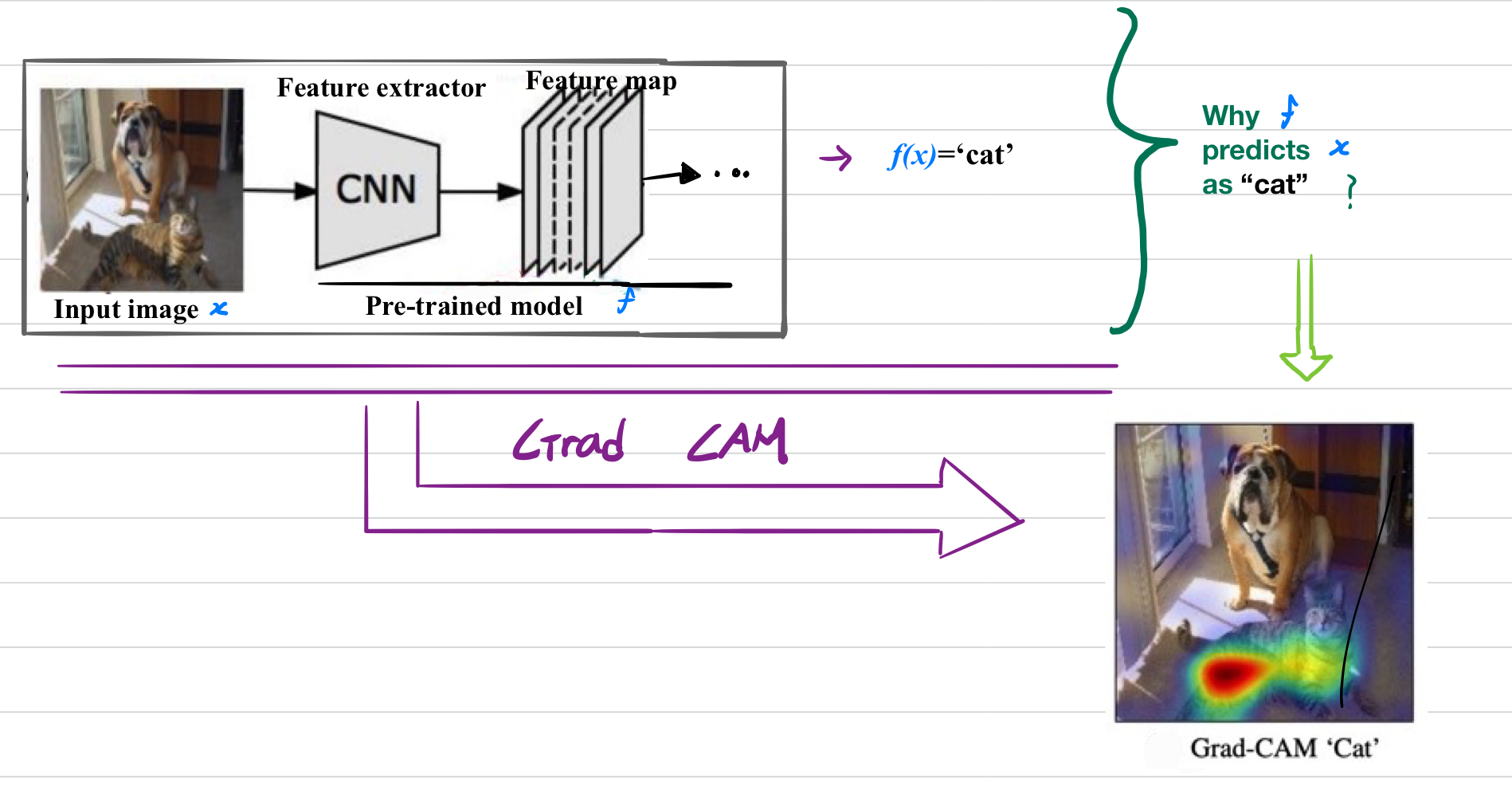 GradCAM uses the gradients of any target concept (such as "cat") flowing into the final convolutional layer.