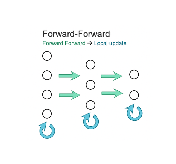Forward-Forward Algorithm (FF)는 Boltzmann machine과 Noise Contrastive Estimation의 영감을 받은 greedy multi-layer learning방법입니다. 아이디어는 backpropagation의 forward, backward passes를 2개의 forward passes로 대체하는 것입니다.