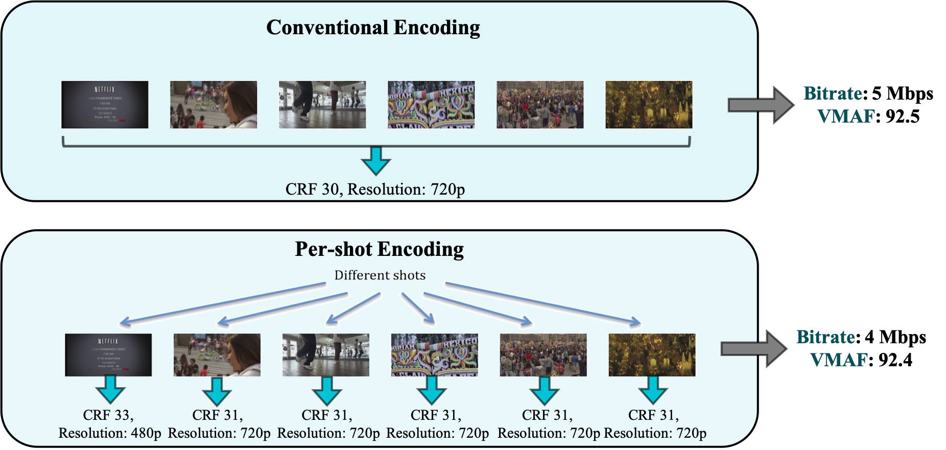 또 다른 특징으로는 per-shot encoding은 shot마다 병렬적으로 encoding처리가 가능하고 하나의 shot에서 encoding error가 발생해도 오류가 발생한 shot만 다시 encoding하면 된다는 장점을 가집니다.