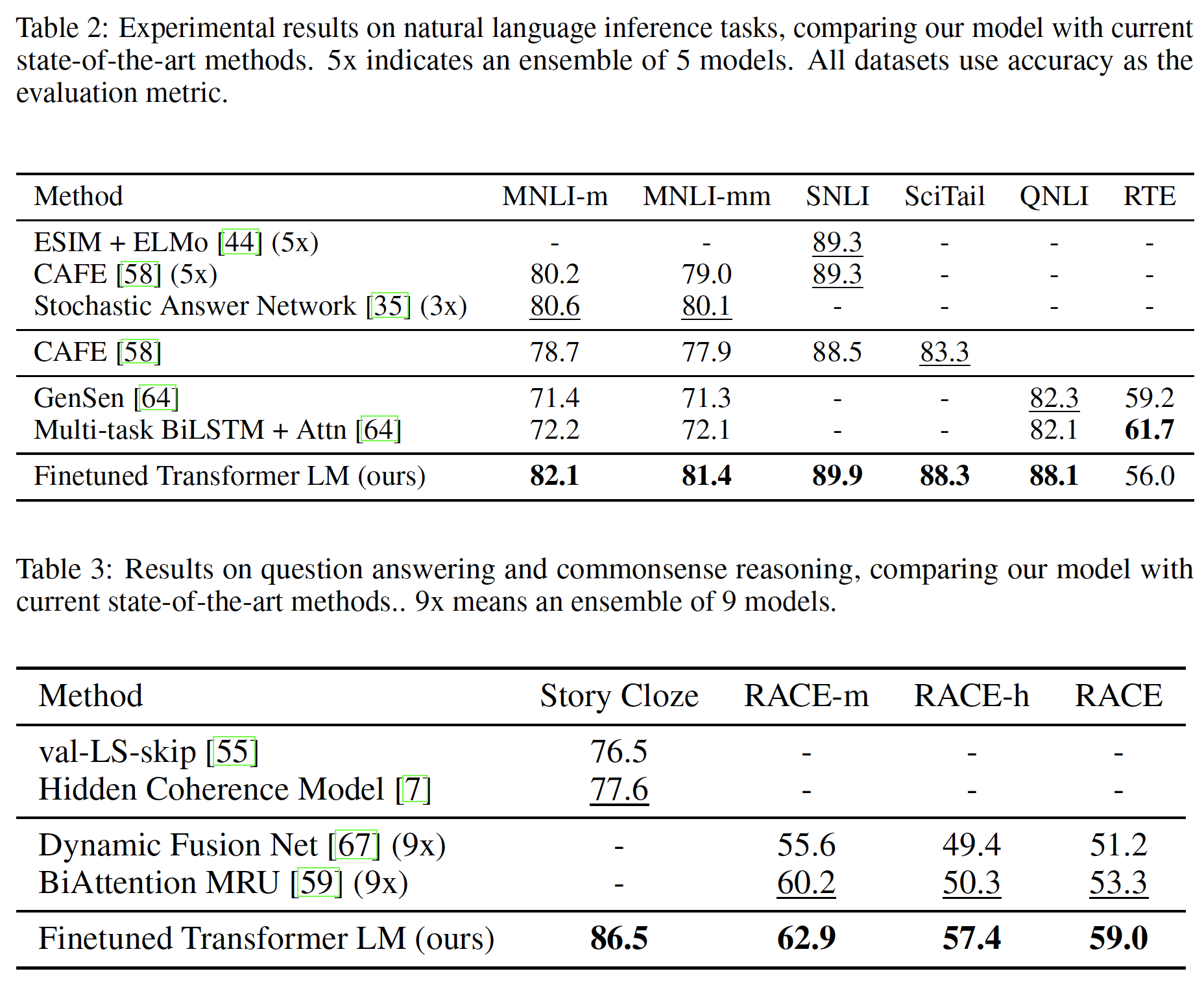 해당 task에서는 두 문장 사이에 가능한 ordering모두 고려하여 input transformations하여 두 개의 input을 만들고 각각 독립적으로 transformer의 output representations \( h^m_l \)을 뽑아내고 element-wise하게 add operation하고 linear output layer을 거쳐 최종 output을 얻습니다.