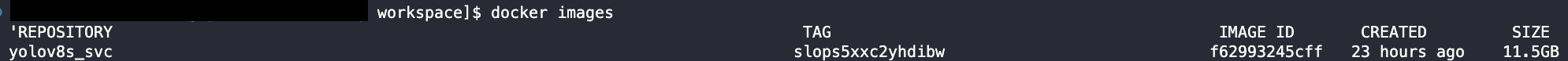 해당 docker image로 container를 생성하여 container에서도 서비스가 정상적으로 작동되는 지 확인해 보겠습니다. 저는 docker run -it --gpus "device=0" --ipc=host --name yolov8s_model -p 3000:3000 yolov8s_svc:slops5xxc2yhdibw 명령어로 container를 생성하였습니다.